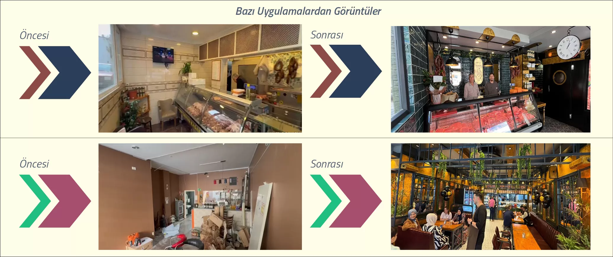 Estetik açıdan da mekân kimliğine ve iç mekân tasarımına uygun kaplama malzemeleri, renk seçenekleri ve aydınlatmalar sunuyoruz. Ürün teşhiri sırasında hem hijyen hem de sunum kalitesi için cam koruma panelleri, ısıtmalı veya soğutmalı teşhir alanları, nem kontrollü sistemler gibi teknolojiler de devreye giriyor.