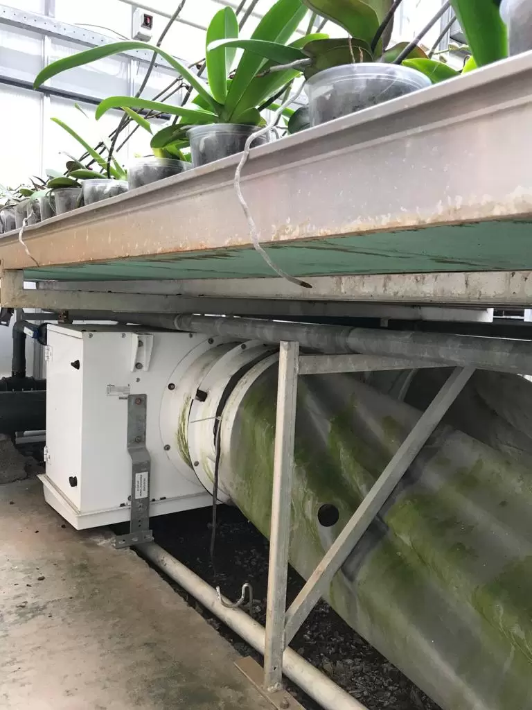 Şekil 4’te Friterm tarafından özel olarak tasarımı gerçekleştirilen Yarı Kapalı Sera Mono Blok Isıtıcı ürün çözümü yer almaktadır. Ürünlerin sera içerisinde konumlanacağı yer itibari ile iki farklı tipte ürün tasarımı yapılmıştır. Ürünlerin ısıtma kapasiteleri yaklaşık 40 kW olup, Ø630 çapta 1 adet EC (Electronically Commutated) fanın sağladığı hava debisi 15.000m³/h’dir. Fan seçimi, 15.000 m³/h debi değerinde yaklaşık 250 Pa karşı basıncı (ısıtma serpantini dahil) karşılayacak şekilde özel olarak yapılmıştır.